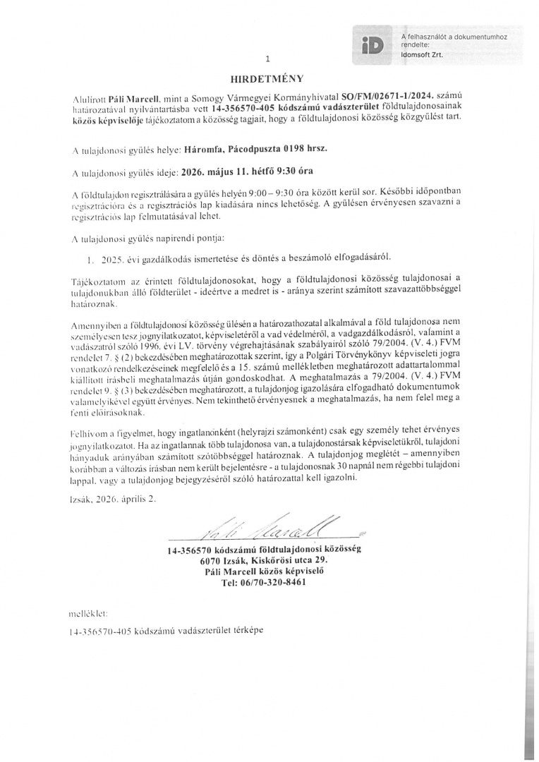 14-356570-405 kódszámú vadászterület közgyűlése
